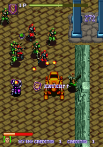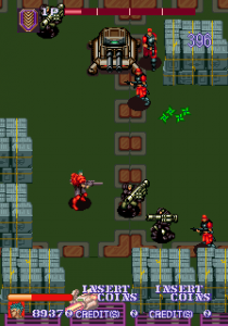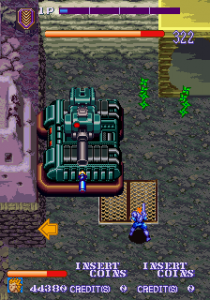 Even if the ride feels like it ends too soon after it begins, Desert Breaker is still a suitably high-octane rush of a game full of explosions, testosterone, and the other blah blah blah that you hear for your textbook action game. It also seems to have a slight Operation Desert Storm influence, as early in the first stage, you break down a gate with either Arabic or Aramaic writing on it, and later in the same level, you see a poster of who’s clearly supposed to be Saddam Hussein. Whether it was intended to actually be set during the Gulf War in a move akin to SNK’s Guevara or if it was just done for laughs is up to debate. Anyway, while the end product doesn’t feel 100% complete (and given the lack of flyers, it’s unsure if it was ever actually released to the public), Desert Breaker is still quite fun and worth a play if you can deal with its transparent influences from Mercs.