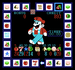 The game uses a weird input layout that actually requires you to use TWO pads for some reason. Well… the more buttons, the better, right? Most buttons make a different sound effect and are used to bet on a specific icon seen on the wheel part of the slot machine. Once you’re good to go, you can launch the thing – using the second pad or spending 180 credits – and hope coins will rain down on you.