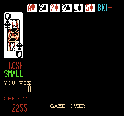 As the slot machine is done spinning, you get money based on your bets. Then you can score extra coins if the right thing comes out of the brick block Fortran hits – a horribly butchered chiptune rendition of Beethoven’s Ode an die Freue celebrates further gains. After that, you can either get your money by pressing Down or try to win even more by betting that sum on a card game by pressing Up.