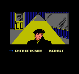 The sidescrolling action scenes are only slightly less sloppy than driving around on the map. When you enter an inhabited area, mobsters assault you either with guns or without. The unarmed baddies must only be punched, as shooting them takes away two hit points. The gunmen don’t ever walk, just adjust their aim to your position. As these are the only enemies you ever face in these parts, dealing with them gets boring midway into the first case. Everyone even looks the same aside from different color palettes, with Tracy only looking slightly different with a longer coat. You’ll either find a clue necessary to beat the case or one of the suspects from the mugshots to either interrogate or arrest, and each suspect looks exactly like the normal enemies until you get close to them. The painfully lazy sprites are “complimented” by the unmemorable backgrounds, even if these bad graphics are not quite as detrimental as the haphazard overworld map. Action stages get more gunmen in later level who are placed just right to hit you before you can hit them, and woe be unto you when you have to play a stage with pitfalls (usually found down at the pier), where you need to be precise with your sluggish jumping physics or fall into a gap. It doesn’t instantly kill you, but losing a hit point and having to start the entire level over again is painful enough.