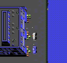 There are five cases, but good luck beating even the first. You start out with a notepad with a clue written on it and a gallery of six mugshots relevant to the case, and by taking names from your notes, you find out that the first place to go is Steve the Tramp’s flophouse. This brings you to the overworld map, which is basically a prototypical Grand Theft Auto setup as you drive around in your police car, though the controls here are kind of stiff as you’re forced to stay on the proper sides of the road at all times. The map setup is admittedly impressive for its time, but the fact that incredibly fast snipers are constantly gunning for you tends to blow the fun out of travel. You have to manually get out of the car to fire back at these guys, which is always a pain and never a guarantee that you won’t get hit. You really need to make your actions count and get hit as few times as possible, taking up to nine hits by default. This is because you have absolutely no continues and each case can take a gruelingly long time to actually finish. Passwords can serve as continues for further levels, but it would really be nice to have some sort of mid-level checkpoints.
