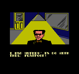 Everything in Dick Tracy seems deliberately crafted to be as agonizing and unfun as possible. If you can navigate the peril-filled city long enough to even collect two clues, you should consider yourself skilled and/or lucky. You can’t cut corners either; even if you find the suspect you need to arrest (it’s Numbers in the first case), you need to have all five clues gathered up or the police captain chews you out for not having enough evidence. You might take about fifteen whole minutes to gather up all the clues and be on your way to bust Numbers, only for a rooftop gunman to off that last hit point and blow all your progress in a blink. You can get heart power-ups that you activate at your leisure (by holding select and pressing B, make sure you read the manual), but those might not be enough to mollify the nigh-unfair difficulty. The effort might not even be worth it considering the unsatisfying monotony of the game’s formulaic action. The only redeeming parts about this game is the music, which is well-done despite the amount of tracks being painfully limited, the mugshots which accurately capture Tracy’s grotesque stable of rogues, and the safe in the password screen exploding if you input an incorrect code. Realtime Associates even managed to redeem themselves with another Dick Tracy game for the Game Boy, which is considerably less awful even if not remarkable. However, the NES game is best fitted with concrete galoshes and sunk to the bottom of the lake nearest to you.