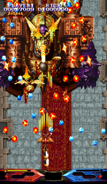 There are eight (four initial, four unlockable with a code) characters. In keeping with Raizing tradition, these hidden characters are from previous games.