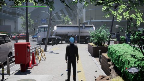 The dissonance between the game’s two tones is most comparable to the one-off side missions in the Yakuza franchise if those were the full ten-hour game. The game is structured throughout as if to lull you into a dull hypnosis, navigating ordinary urban landscapes only to jolt players with a bizarre plot development. The game’s cycle of anticipation and payoff does not revolve around any sort of tension, but instead the expectation that your wandering will lead you to another unexpected comedy beat. The game’s competing tones do not really gel with each other, but its propensity for insane plot twists is the game’s most entertaining facet, preventing the bulk of the game’s reliance on speaking with NPCs from becoming unbearably boring.