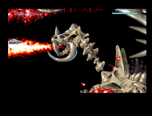 The game features five levels and a final boss stage to blast through, with end bosses and midbosses as you go through it. The levels consist of an industrial stage, a Giger-inspired stage inside a huge alien creature, an alien breeding facility, an underwater stage and one on the surface of an alien planet. The final boss stage starts with an escape scene in a launch tube and ends at an alien hive.