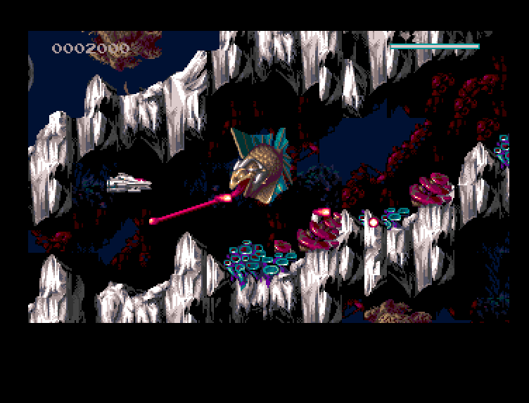 Due to the Amiga’s hardware limitations in managing colorful parallax layers, the team deliberately decided to have as many colors on screen (32) as possible as opposed to utilizing parallax scrolling. This decision resulted in attractive artwork and the fact that they managed to pull this off is all the more impressive considering that few action games on the Amiga achieved a smooth framerate with 32 colors on screen.