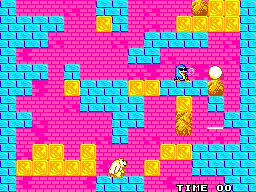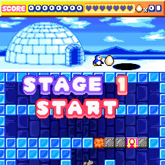 Maybe as a leftover from the MSX deal, Pony Canyon got the license to produce a version of Penguin Land for the Game Boy as well. Not quite a straight port, this version uses the 25 stages from the original, but mixes them up with the corroding floors and the eagles from the Master System game.