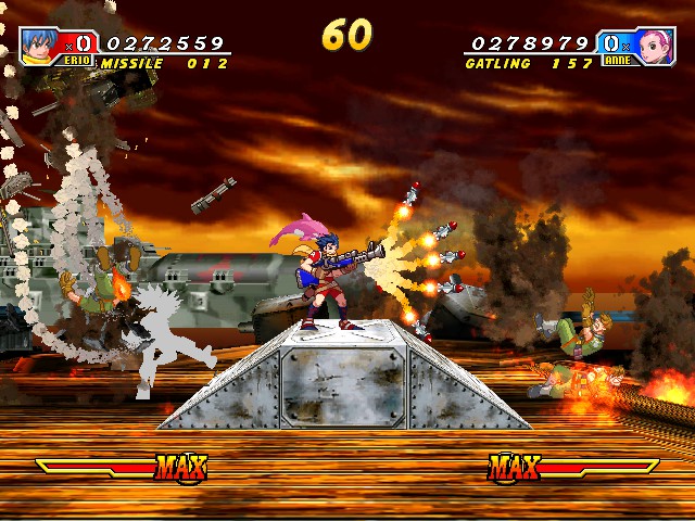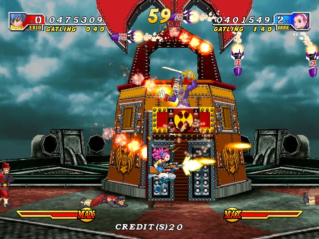 Dolphin Blue is a bit of an oddity. Developed and published by Sammy for their Atomiswave hardware, it’s a run-n-gun arcade game released in 2003, at a time when run-n-guns were mostly out of the mainstream. It’s also very obviously inspired by Metal Slug, which was, not coincidentally, the only other run-and-gun series that was still on the marketplace at this point.