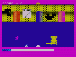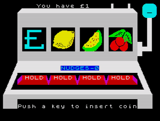 Next is Race Ace, which looks vaguely like Namco’s Rally X but plays more like Big Rigs. The controls replicate real driving with specific buttons for turning left and right, but this only makes sense when travelling up the screen. You don’t actually have to win the race either, just get ahead of the pack, whereby the race ends. Fido is a single-screen arcade-style game, where you move left and right and wag your tail to bash moles’ skulls in. When your food meter is low you need to eat from the bowl. It sounds almost OK, as OK as the awful Donkey Kong 3 anyway, but the execution is dire. The dog actually increases in height when sitting down, making him the target of flying birds, so he needs to stand up in order to “duck” and avoid them. For fans of the original there’s also the sequel, Fido 2: Puppy Power. It’s a lot like the first, except the dog can now walk up and down, and shoots lasers out of his face. Fruit Machine is a one-armed bandit simulator and as uninteresting as you’d expect.
