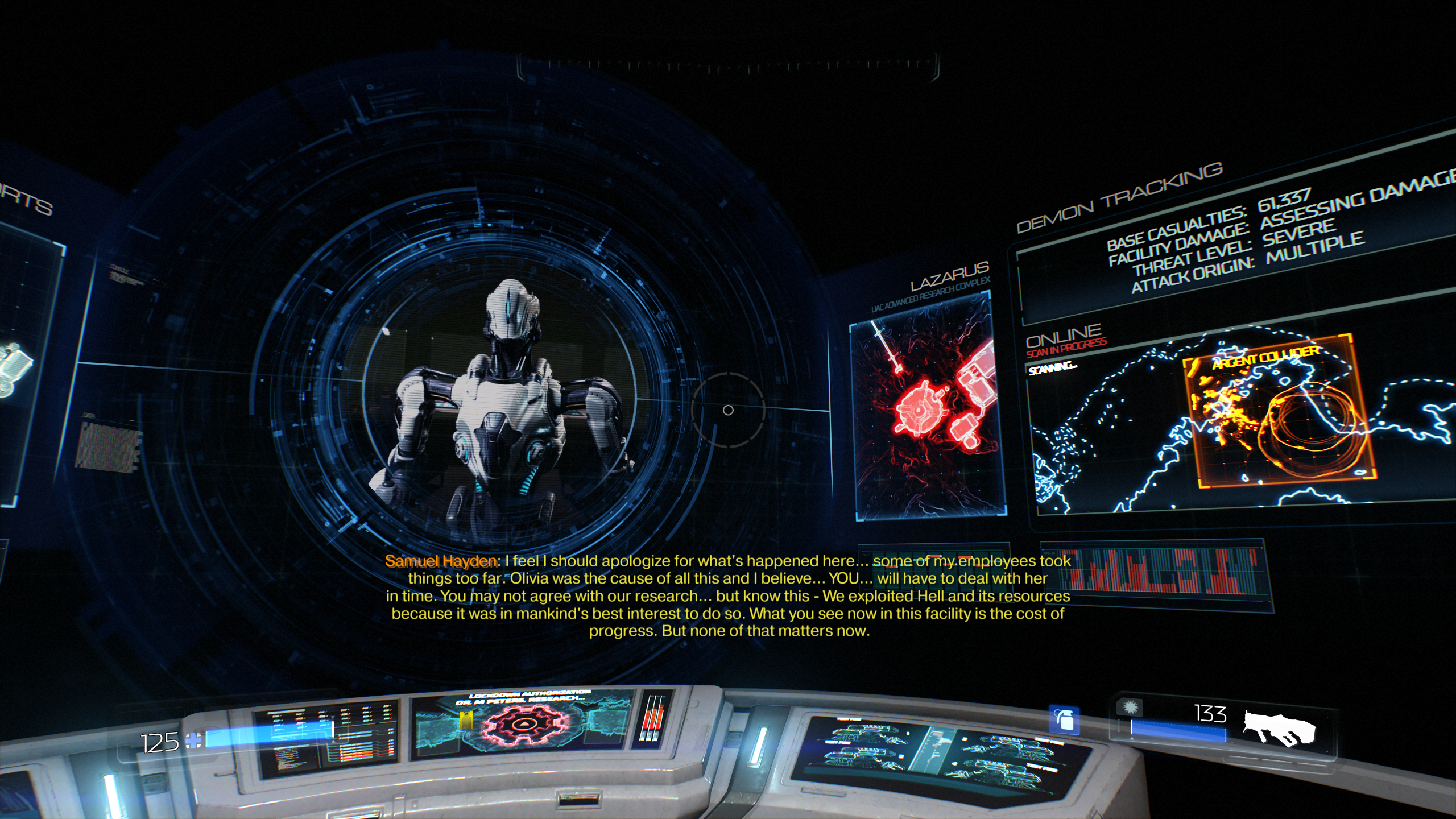 There is also a VR game called Doom VFR. Not a lot of people like it due to poor controls and weird bugs that made it difficult to play. You play as a guy put in a robot body and gets turned off by Hayden at the end, has no importance to the franchise narrative, might actually clash with a later Eternal canon addition, easily ignored.
