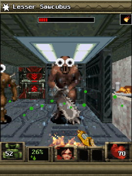 By Orcs & Elves, the studio realized it’s probably best to limit the amount of experience the player can get for a better difficulty curve, and Doom II RPG makes the most use of those lessons. There’s still some limitations in the Java version, like the weapon scrolling is still slow, but a lot of smart decisions have also been made. For one, you’re limited in encounters and bonus experience, and there are eventual caps on stat boosting. You can do little minigames to boost every stat, minus strength which just requires you to find the chainsaw and then find some meat (to chainsaw), but they’re purposefully repetitive so you don’t feel like grinding them out. They’re also encountered at only a few places and have their own caps as well.