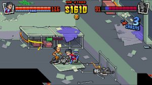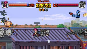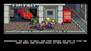 The final wrinkle to the game is the tag team system. Players choose two heroes to swap between, which allows for quite a bit of flexibility and lets them cover a given character’s weaknesses. If you play as Marian, who specializes in ranged moves but doesn’t have a ton of health, consider pairing her with Uncle Matin, who comes packed with a riot shield he incorporates into his combos and has a larger health pool. Using the right timing, you can unload your special abilities on a crowd of enemies, then switch to your other character to keep the carnage going. Like all great beat-em-ups, the more one plays, the more one learns, and the more rewards and crazy combos they can perform.