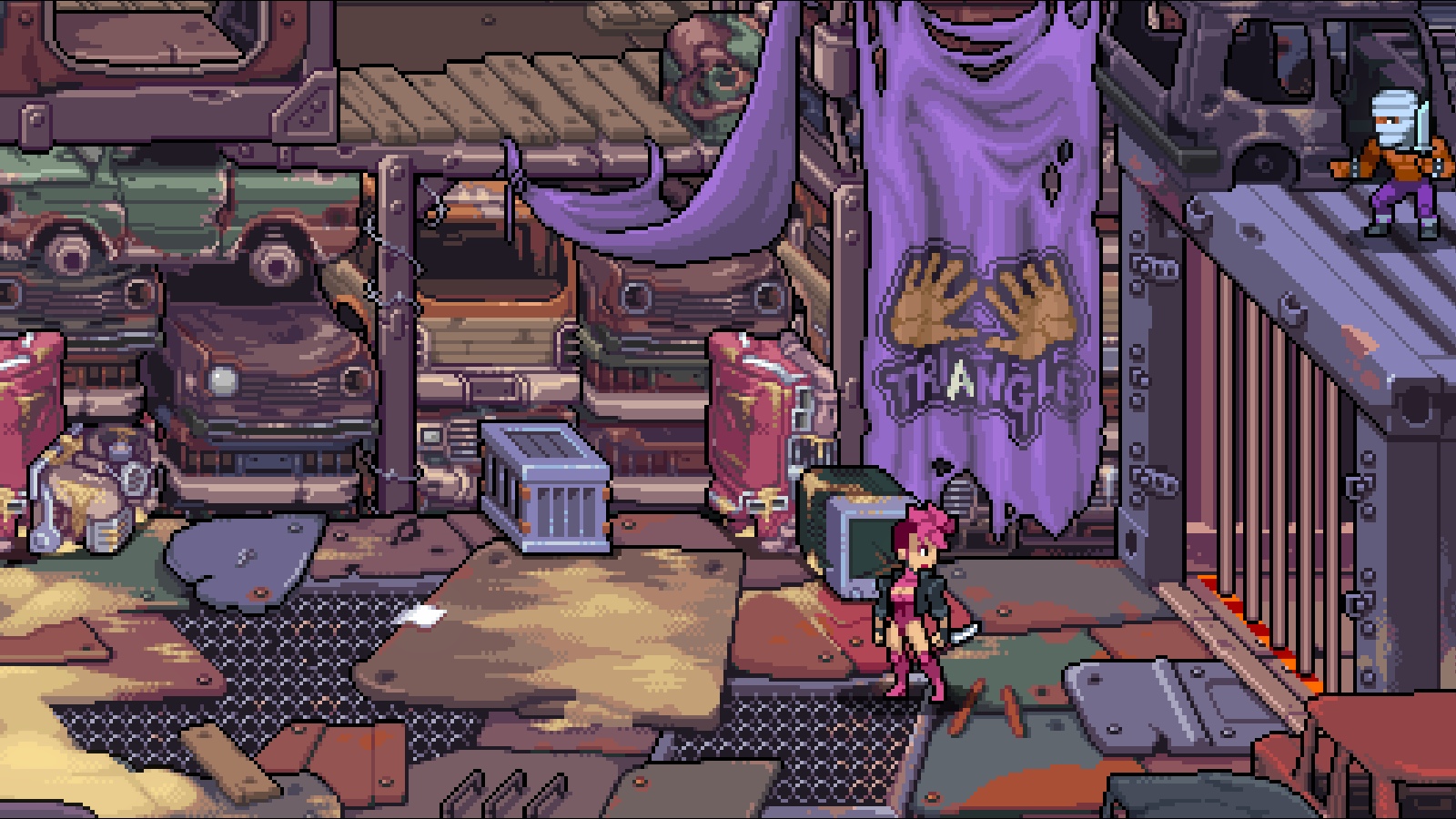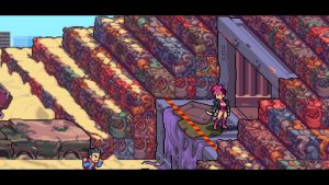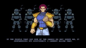 The most readily apparent sign that this was handled by an indie developer is the art style. Rather than realistically proportioned sprites or cartoonish 3D models like in Double Dragon Neon, Gaiden uses a more unrealistic pixel style that features much more exaggerated character models. It’s fairly simple, and remains one of the most contentious elements of the game; people seem to either love it or hate it since it’s very different and brighter looking than past games. Regardless, it let the small team at Secret Base work within fairly confined development conditions and the end result is a flashy beat-em-up with its own distinct personality.