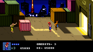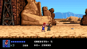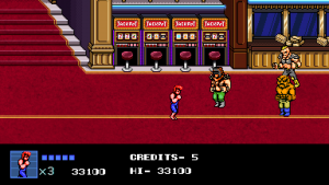 Like some of the more modern Double Dragon games, there are cutscenes at the beginning and between levels, detailing Billy and Jimmy Lee’s trek across the globe to save Marian. The game begins in the desert before heading to a Vegas-like casino, before they hop on an ocean liner to head to Japan.