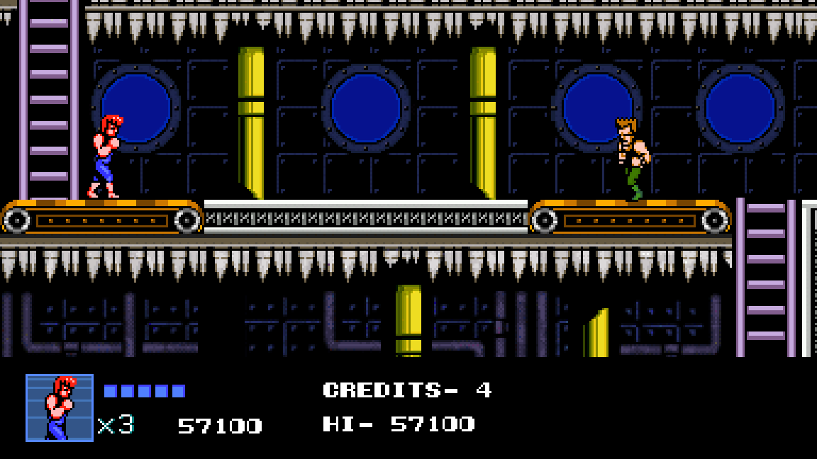 Much like Mega Man 9 hearkened back to Mega Man 2 (perceived by the developers to be the best / most popular entry), Double Dragon IV patterns itself most closely after the NES version of Double Dragon II. It looks and feels very similar, though it ditches the forward/back command scheme for the typical punch/kick, and finally has a separate jump button. There are lots of classic enemies, but plenty of new ones, including some masked goons, a sumo wrestler, and some ninja ladies. The penultimate villains here are Casey and Shannon Okada, sisters who are sort of like evil female counterparts to Billy and Jimmy.
