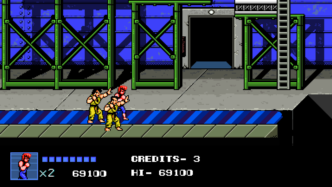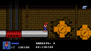 Even though the basics in place are fine, there’s a lot about Double Dragon IV that just seems…off. It uses a modern widescreen presentation, but many of the sprites are simply ripped from the NES games, so they feel small against the gigantic playing field. The backgrounds are drawn in an 8-bit style, but still more complex than the NES could ever handle, both in their tiling and their color scheme. The soundtrack uses some blaring synth that sounds terrible – there’s an option for an NES-style rendition, which is much more appropriate, but it should’ve been the default. There isn’t any boss music, which make the stage ends feel like they come out of nowhere, and even the little “go” arrow is missing sound effects.