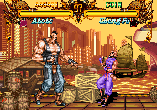 For the most part, the game is a very by-the-numbers iteration on the Street Fighter II formula, to the extent that Billy and Jimmy are turned into the obligatory shotoclones with the usual energy ball, uppercut and spin kick special moves. The gameplay feels noticibly faster and smoother than most Street Fighter titles and other fighting games at the time. The two features that make the gameplay stand out a bit are the fact that special moves apply to all attack buttons, no matter if they’re punch or kick based, and a rather unique “charge” move system, which combines features of the standard super move and desperation meters: As players dish out damage, they build up a blue energy meter, but it overlays on the standard health bar from the opposite site of the red damage indicator. Once the blue and red parts meet, an indicator starts flashing to announce that the strong charge moves are now available, so this happens a lot faster the less health you have left.