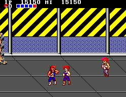 Double Dragon may not have been the first beat-em-up, but it was the first to introduce the belt scroll formula the genre became identified with for the next decade. Whenever the heroes encounter a group of enemies, the scrolling stops at a certain point, only allowing them to go on when the mob has been cleared out. Double Dragon comes with the additional peculiarity that all four stages are part of one continuous world, which makes for a nice coherent feel with no transitions.