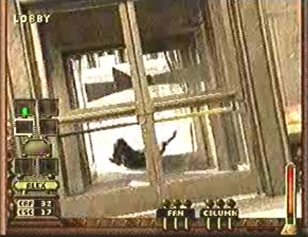 The inclusion of the mini-map is easily the most welcome addition to Double Switch, but not the only one. Some actually make the game harder to make up for the map’s display. Night Trap‘s traps were run from a single button, and often based just on timing; there were no sound cues. The player had to watch the meter for the red light, and hit it the moment the intruder hit a key trigger. In Double Switch, the triggers are often made up of brightly colored panels, and when activated, a loud ring tells the player to trigger it. However, some later traps (often the most crucial ones) require split-second timing, leaving no room for error. If the player fails to catch an intruder who’s trying to cut the power or harm a tenant, it’s instant game over.