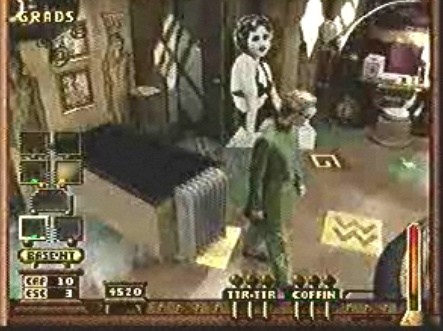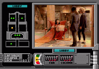 Double Switch isn’t much of a sequel in anything but the trap-based gameplay, but the improvements it makes are significant. Where Night Trap forced the player to constantly shift the camera between rooms to find out what was going on, Double Switch‘s developers were kind enough to implement a mini-map of sorts. Whenever someone enters a room of the Edward Arms Hotel, the map immediately notifies the player of their arrival. Green circles indicate a resident, yellow a burglar (expected robbers), and red for intruders (someone who has no earthly business being there).