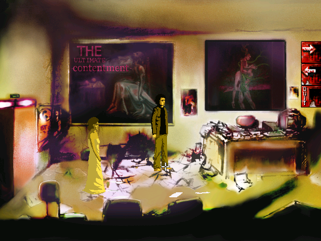 But sexuality and violence don’t have to be such superficial themes. Exploitation might be tantamount to desensitization, but there can be reason and merit behind this. Sexuality and violence were favorite themes of renowned literary figures such as Anthony Burgess and the Marquis de Sade. They explore and explain our fascination with this primal fetishism, argue that they exist for more than simple marketing tactics. Because although many video games use them for capital gain, others may use them for, y’know, aesthetically pleasing purposes: art, expression, etc. Silent Hill 2 is a glorious example. Dark Seed, I Have No Mouth and I Must Scream, and Dreamweb also spring to mind. Independent adventure game developer Harvester Games, which is led almost entirely by Remigiusz Michalski, created another entry into this highly laudable category: Downfall.
