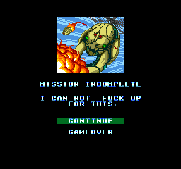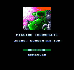 Speaking of dying, Download is somewhat infamous for its foulmouthed Engrish death screens. There is a unique death screen message for almost every substage, and they all show you dying to one of the bosses of that stage. The most infamous one comes from Stage 1-2 and conveys such a frustration that only the F-word can suffice. Sure, a Japan-only game that is mainly written in Japanese cannot be blamed for trying out some “cool” English phrases, but as people have pointed out in the past, it seems like they took their idea of the English language from 1980s Hollywood action movies and never bothered to check if any real person speaks like this. Syd does however speak in a non-polite, young-man Japanese in the cutscenes, and in this light the Engrish seems more understandable, but this is clearly an example where cultural nuances do not translate directly over the language borders.