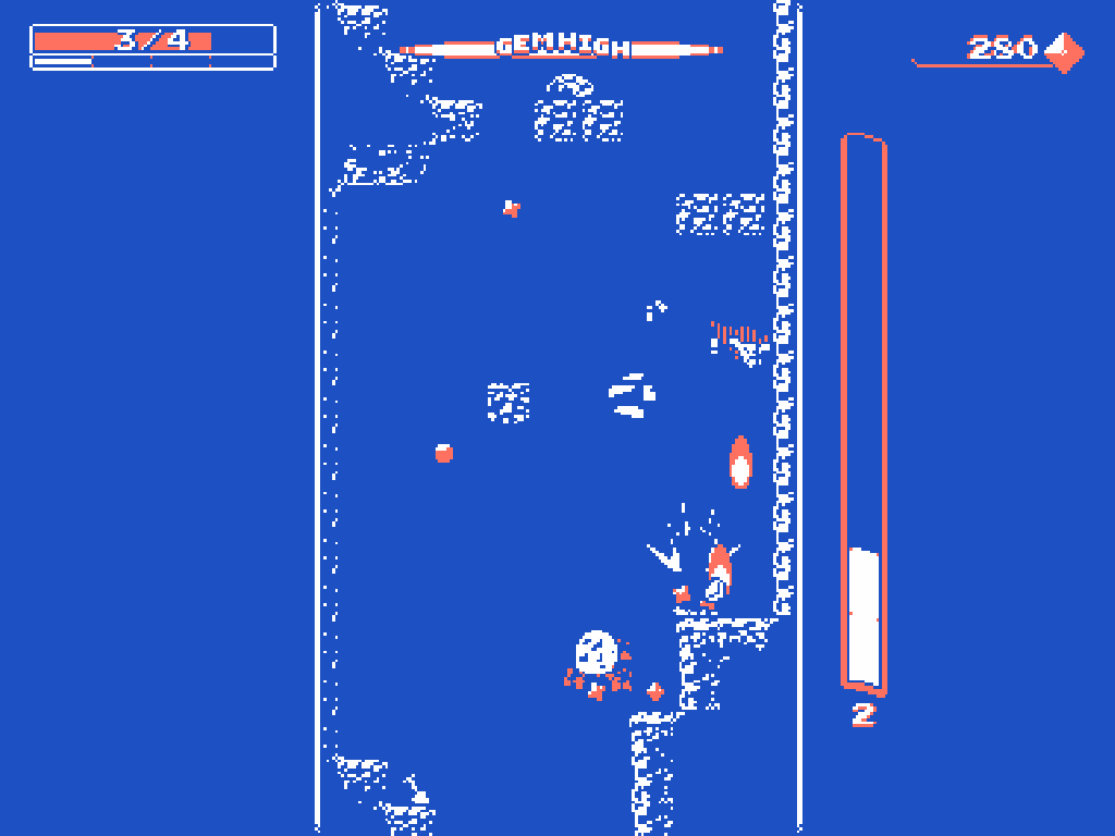 Downwell is a game where you jump into a well and then go down it. Also, there are monsters that you have to stomp on to kill. Except the ones that are solid colored.