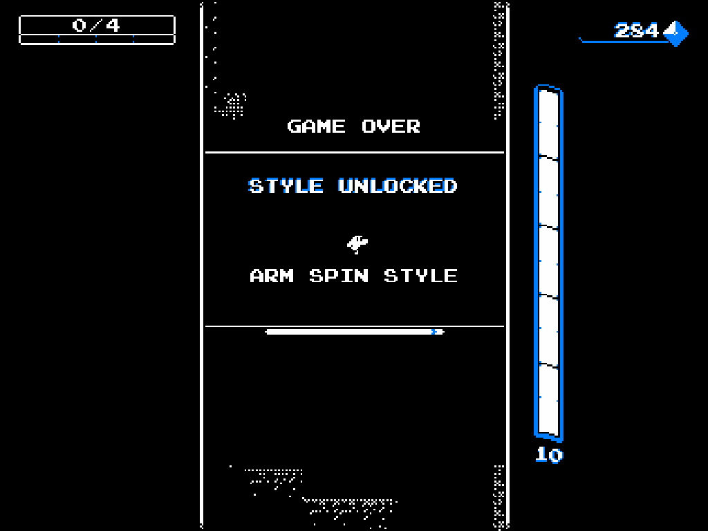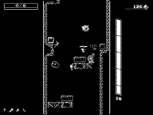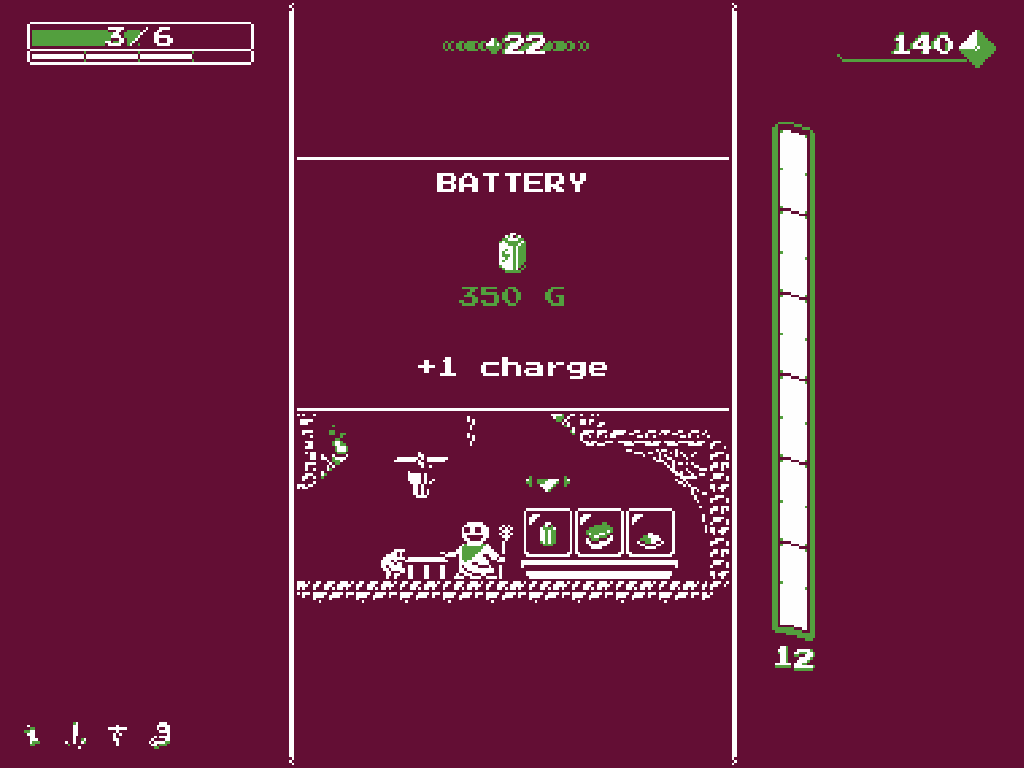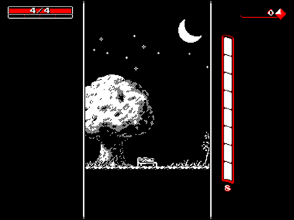 The sprite work is simple and charming, and every new section of the well has a new set of themed creatures to deal with, like the catacombs having a horror theme with bed sheet ghosts and lots of spooky skeletons that will send shivers down your spine. It gives the game feeling fresh, as do the different color palletes you can use. There’s some there for style, and others there for nostalgia. There’s a Virtual Boy style here, and it’s as painful to look at as you’re imagining.