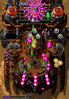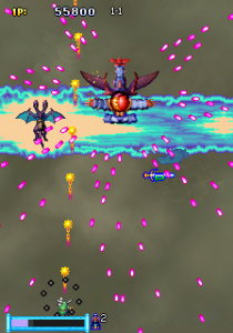 Mastering these tricks is essential, because Dragon Blaze gets quite difficult. In fact, much more difficult than Psikyo’s other games. While not technically a bullet hell shooter, the projectiles flood the screen more than the typical Psikyo game, with a combination of Cave-style bullet curtains and Raiden-style bullet speed, which makes many of the bosses quite terrifying. Less than half way through the game, the screen is almost always covered in fast moving, glowing pink death.