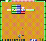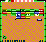 The default speed for the ball is generally pretty slow. However, the player can speed it up by hitting select, up to a total of ten times. When the ball goes off the field, its speed reverts back to the first setting. On one hand, playing with the speed can be useful in situations when the timer is almost out, or the player just wants to clear a level faster. On the other hand, increasing the speed increases the risk of the ball going off of the field. The ball can be slowed down by breaking blocks with the letter D on them. The game introduces different kinds of blocks throughout the levels, such as blocks that take two hits to take out, indestructible blocks, blocks that move around, and crates that are destroyed once all the blocks below them are taken out. The game goes on for 100 levels, and ranks them in difficulty between one and five gems. The game stops introducing new mechanics around level 20, and instead puts the mechanics previously given to the test. Some of the levels are brutally difficult and sometimes seem cheap. Thankfully, the player can skip any of the levels with a passcode.