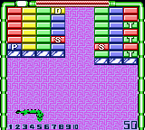 The player technically has four lives, which are lost by having the ball go below the screen as usual. Every time a live is lost, the dragon loses length, eventually becoming the size of a tadpole. The game also gives a time limit on levels, and while the player can get their length back by breaking blocks with the letter P on them, the player can also get extra time by breaking blocks with the letter T on them. The player can also increase their top speed by breaking blocks with the letter S on them. The player also has a meter that fills up when at least two blocks are hit in a row without the player having to bounce the ball. If the player lets the meter fill up a quarter of the way, they can become a blue dragon that freezes the time and can also freeze the ball in place. Letting the meter fill up half way lets the player become a white dragon that can give the ball an extra bounce in mid-air. Letting the meter fill three quarters of the way lets the player become a black dragon that can create a barrier for the ball to bounce off of. Letting the meter fill near the top lets the player become a red dragon that has the obligatory projectile power-up. Having the meter fill up all the way summons a giant red dragon that causes the screen to shake and destroys most of the level for the player.