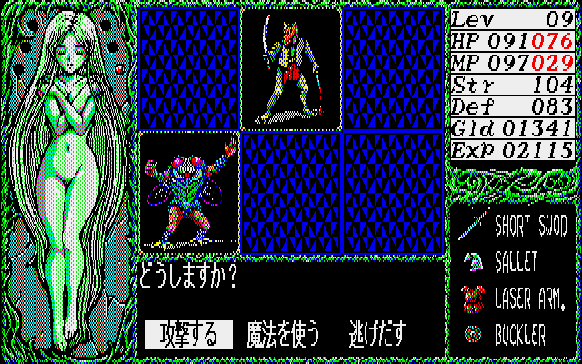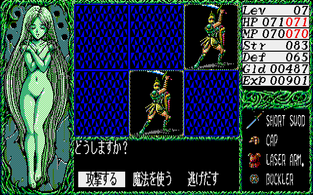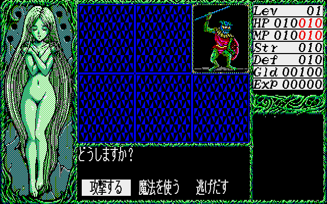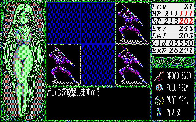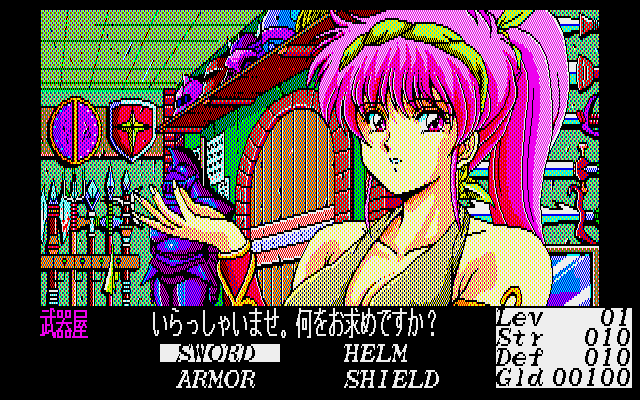 In a time where most erotic games still didn’t look very good, Dragon Knight was one of the few that featured high quality anime style art and competent CG work. It only uses 8 colors, so some of it is quite impressive for the limited palette. Not to mention the music, which was also better than what most players were used to in eroge, and the effort that went into making the soundtrack is apparent. Each floor of the tower has its own theme, and the later half of the game even uses a different normal battle theme. While all of the computer versions released in 1989 look and play mostly the same, the music in the X68000 version sounds best, thanks to the OPM sound chip.