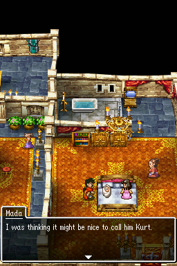 Even more importantly, this is the first time that Dragon Quest V was released in English. It follows the translation style of the DS remake of IV. The accents aren’t quite as overdone, though there is a backwoods that has a very “rural” way of speaking. Some of the names were changed from the Japanese versions, like Papas to Pankraz and Flora to Nera. This was also used as the basis for the Android and iOS ports.