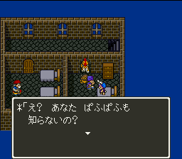 The visuals are an improvement over the original, although it still looks a bit drab, and it lacks any fancy Mode 7 effects. The sound chip of the SNES also allows for high quality instrument samples that sound close to a real orchestra. Some of the music sounds flat compared to later SFC titles, but considering this was released early in the system’s life cycle, it’s actually pretty impressive. The movement is still clunky, but a bit smoother, and there’s now a context sensitive “examine” button (either shoulder button) which will automatically talk to people, open doors, look at objects, and such. It’s definitely a step up from the Famicom games, but overall it still feels pretty primitive.
