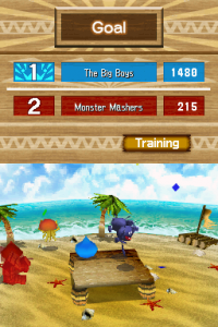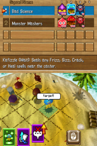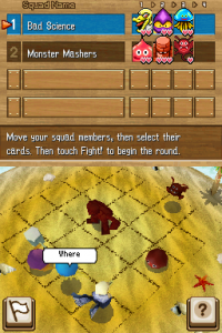 A lot of thought clearly went into how each monster interacts with one another in battle and it’s theory crafting with those relationships that serves as the most interesting part of Dragon Quest Wars. A monster like Dracky is vulnerable at all times, but with the use of a Healslime, it’s possible to keep one alive for longer. Hammerhood’s attack can be easily nullified by a Healslime’s Buff spell, but if a Drackyboosts it with Oomph first, it becomes threatening enough to pierce through Buff and even OHKO unprotected monsters. Golem’s strength might seem overwhelming at first, but with the use of abilities like Wyvern’s Dodge, it’s easier than you’d think to avoid its wrath. Blocking/countering maneuvers done by the Slime, Golem, or Hammerhood only apply to physical attacks, so if they give you trouble, a Dracky or Wyvern’s magic can bypass those abilities. Of course, if there’s a Healslime, it can use Kafizzle to prevent magic use entirely, though Kafizzle applies to all monsters and not just the Healslime’s enemies. In case it wasn’t clear by now, the Healslime can be the backbone of many team compositions and single handedly lends the game much of its tactical potential.