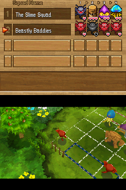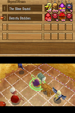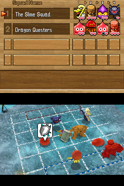 There are six monsters to choose from and each one has unique things to offer. The Slime is a jack of all trades, able to attack physically, use Sizz magic, and defend against attacks sent its way. Dracky is the only unit that can move two spaces (every other unit can only move one space per turn) and it also gets a diverse pool of options, including an attack that shoves enemies, Crack magic that hits diagonally, and Oomph to power up allies. Its one weakness is that it’ll get OHKOed by any attack thanks to its lone point of health. Healslime is a support character dedicated to increasing defense with Buff, shutting down magic attacks with Kafizzle, and patching up wounds, but it’s so dedicated to this cause that it’s unable to attack at all. Hammerhood can use its weapon of choice to hit up to three targets simultaneously (including its own allies if they’re in range!) and it can stay in the fray through a protective counterattack and self-healing option. The Wyvern can attack two spaces in front of it, reflect the magic attacks of other monsters back at them, and dodge physical attacks sent its way, making it a disruptive force in the right hands. Lastly, there’s the Golem, who has the highest HP total, the ability to take damage in the place of allies, and the strongest attack in the game, albeit at the cost of one of its own HP each time it’s used.