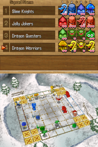 Rather than providing any kind of story, Dragon Quest Wars simply gives you ten training missions to go through. Each one gradually teaches you the ropes and increases the difficulty ever so slightly until you have a full range of options to work with. You’ll begin with learning how to move along the field and set up attacks and end with defeating an opponent under standard conditions. Once you’ve completed all ten, you unlock the ability to battle people online (which no longer works due to the closure of DS online services) as well as locally if they have a copy of the game. You can also do free battles against the AI and customize them to your liking. You can select from a small range of maps, decide what units each player has, and opt for two player or four player battles. Depending on the number of players, you’ll get different maps, but aside from their appearance, some changes in size and a few blocked off tiles, they lack meaningful gameplay features.
