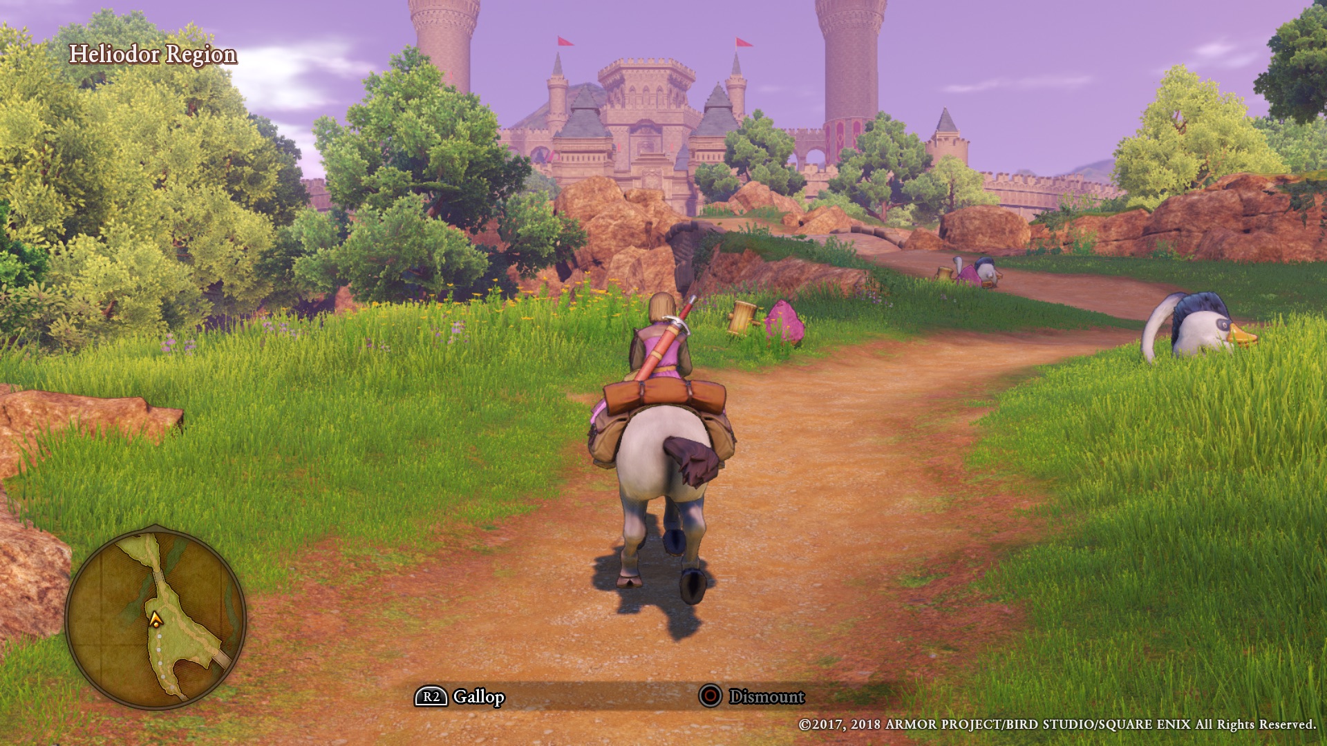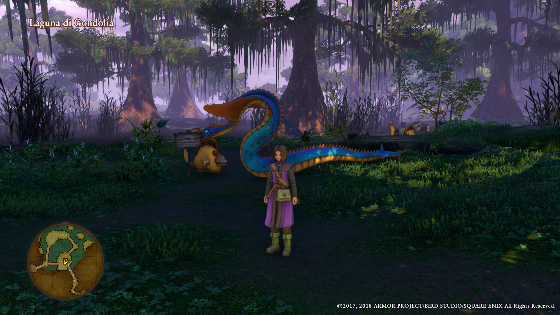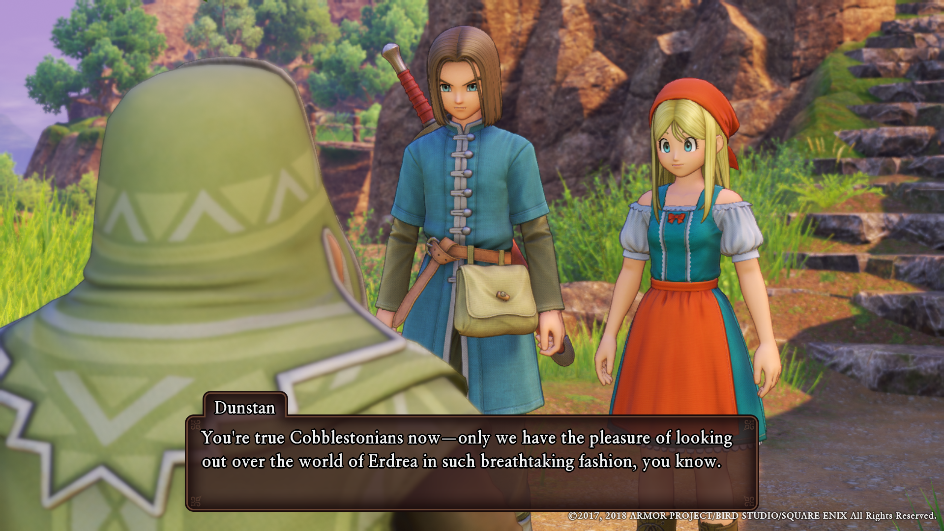 The console version Dragon Quest XI most closely resembles Dragon Quest VIII, though now in HD. The characters still have some slight cel-shading, but the environments don’t, so it doesn’t look quite as cartoony as DQVIII. The 3DS version has simplified environments and characters with smaller proportions.