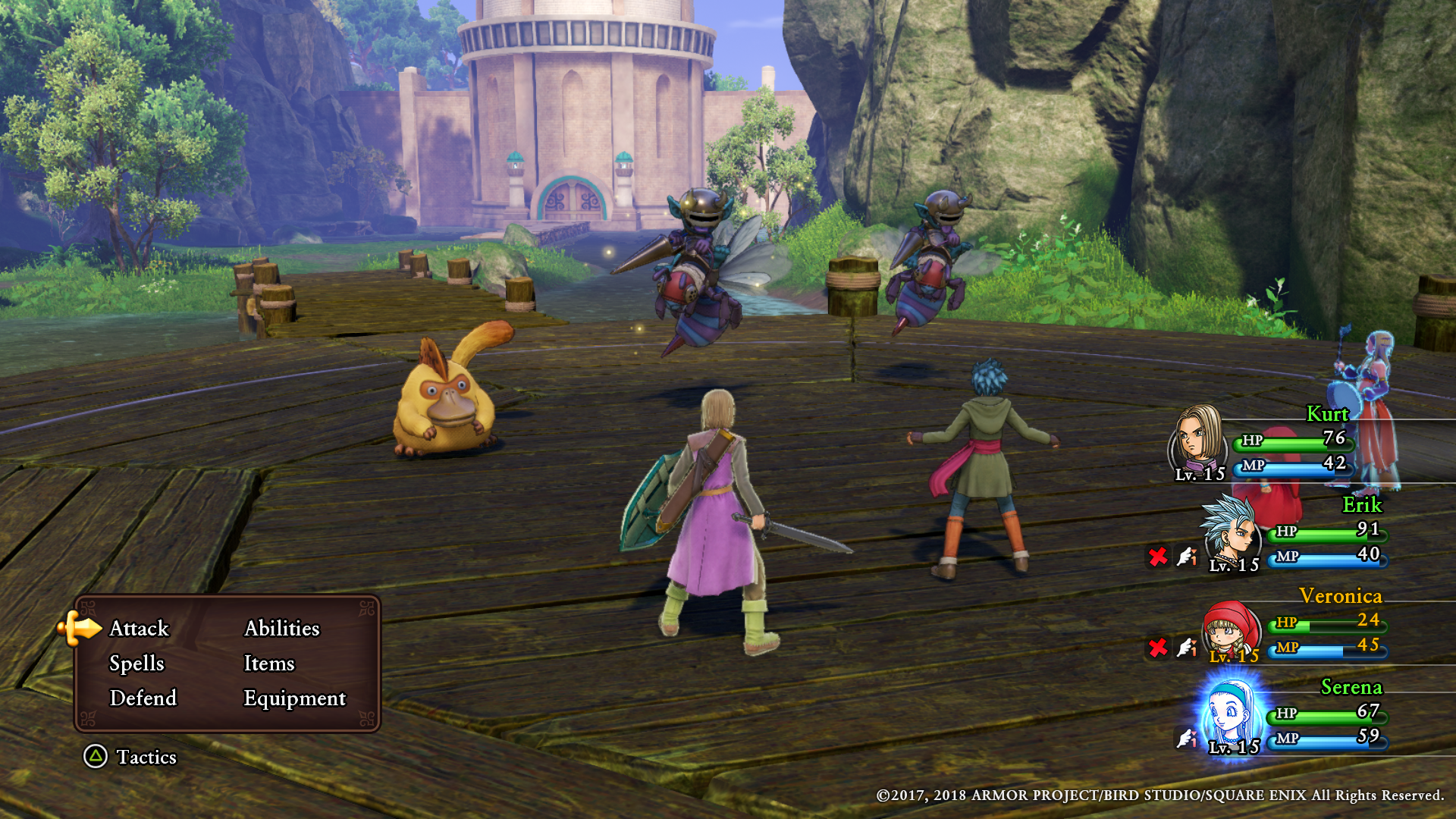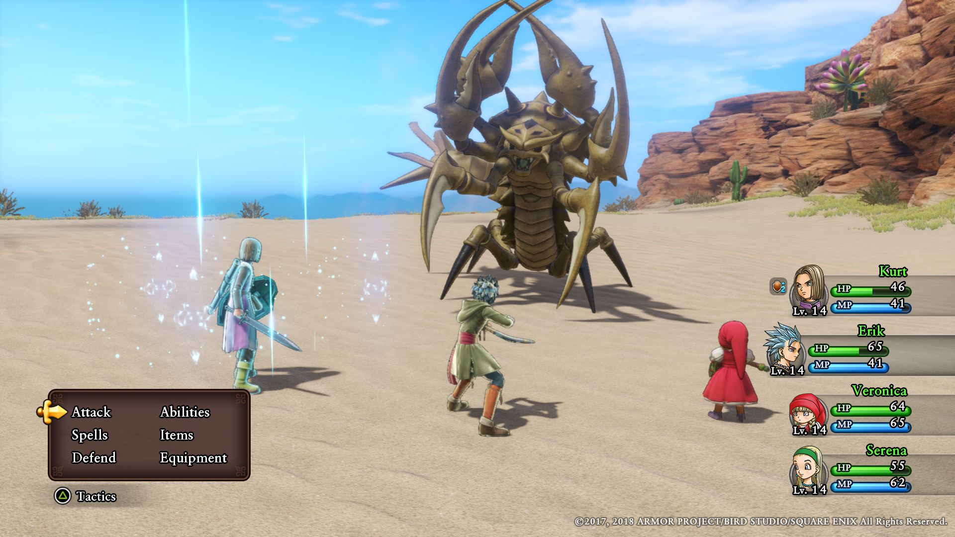 Battles are fought from a third person perspective (with a classic mode available) and are fully animated. You can actually move your characters around the field, though their positioning doesn’t actually affect the combat at all. Players can set the speed of the action and have several options for engaging in automatic battles. These additions help alleviate combat monotony and make Dragon Quest XI one of the most beginner-friendly JRPGs.