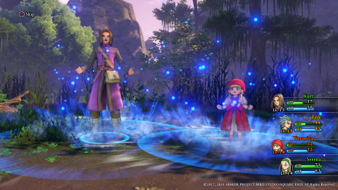 The PlayStation 4 and 3DS versions share the same story and a majority of gameplay mechanics though the 3DS version uses the more traditional side-by-side turn order. In Japan, there was also an option to generate a password that let you take progress between the two versions. The 3DS version also includes Super Famicom-style graphics on the bottom screen, making it look like Dragon Quest VI. Also in this version is an additional side story that sees the player visit the worlds of past Dragon Quest titles, as well as some StreetPass minigames.