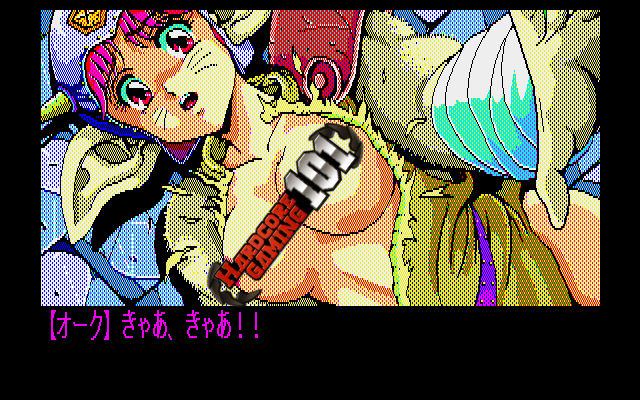 In the later half of 1980s, the Japanese adult game market was still relatively unexplored, and the number of companies trying their hand at it was increasing. Text adventure games were the norm, and there wasn't a lot of effort made to change that. They were easier to make and the quality wasn't that important, since they would sell for the porn anyway. And that's how people saw them as, porn games and nothing else, so any effort to make good games seemed pointless. But in 1989, a couple of friends around main designer/writer Masato Hiruta became tired of working for other erotic game companies and founded Elf to try something different. The idea was simple: Make a Wizardry-like game, but full of cute girls and tons of nudity. The result was Dragon Knight.