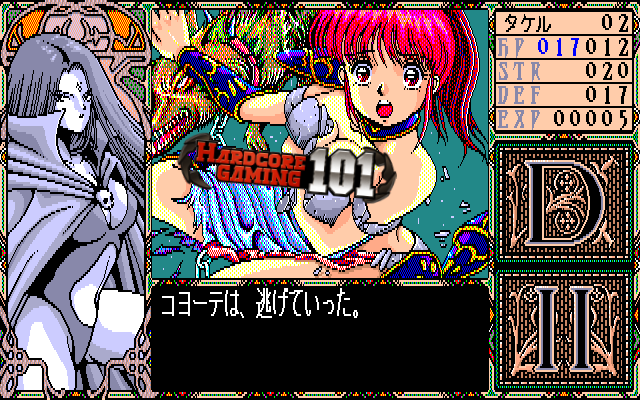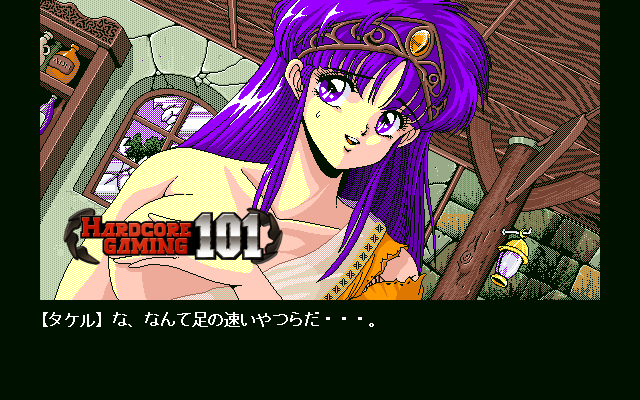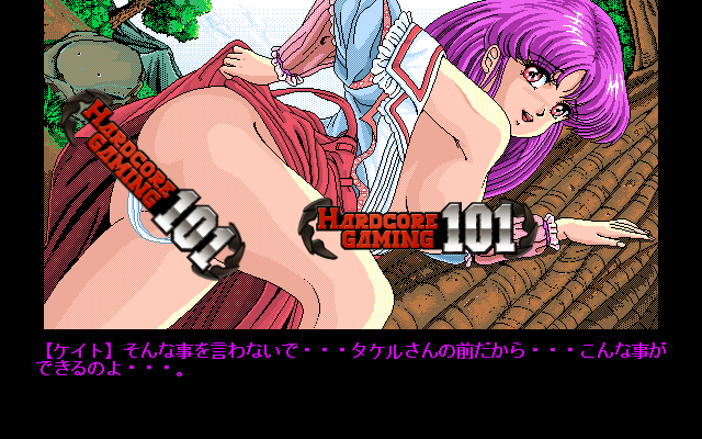 Two years later, NEC Avenue released a port for the PC Engine. This was an important moment for the eroge industry, as it was the first time someone ported an erotic game for home consoles. People were doubtful there was anything worth seeing in a censored port, and most still thought it was just the kind of game people played for the sex and nothing else. But Dragon Knight was a popular franchise, and NEC decided to take the risk, even going through the trouble of gathering a cast full of some of the most popular voice actors from the 1990s. And it was a success - adult games were finally starting to be seen as something that could be legitimately fun beyond their smut appeal. The port itself is mostly identical to the computer version, although it obviously removes the erotic content. The girls still visit Takeru at night after he saves them, but the scenes end abruptly with no mention of what happens next.