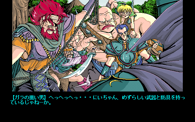 The mayor of Deez. He promises Takeru to give him money to get his equipment back if he gets rid of the bandits living in the mountains west of the town. Voiced by Kenji Utsumi in the PC Engine version.