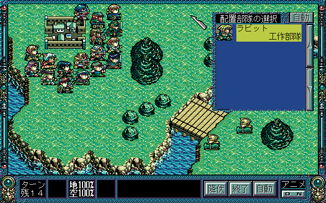 Instead of having HP for units, the game uses a system similar to the Nintendo Wars games, where each unit is defined as a number of soldiers. Soldiers get killed each time a unit is attacked, and the number remaining influences their strength and defense, so whoever attacks first has always the advantage. Even the most powerful units will become useless after taking a few attacks, which is where healing comes in. Most maps have two or three healing points scattered around, where you can station your units so that they start the next turn fully healed, but enemies are also able to take advantage of these. To prevent players from abusing them with hit and run strategies, the game introduces a turn limit system, and battles will instantly end with a game over if the turn limit is reached. The game has a nice balance of preventing players from rushing to end the battles quickly, but also forcing them to take a few risks to finish within the turn limit. Most of the challenge and fun in the game comes from trying to finish each map with every character alive, as simply winning usually isn't that hard.