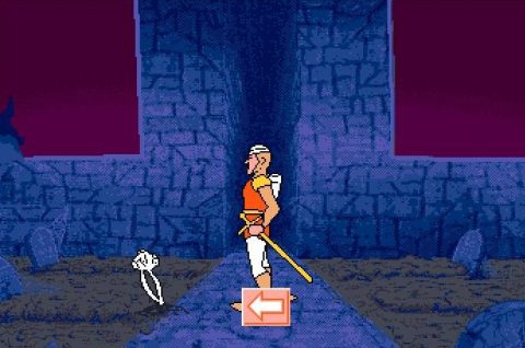 A few brand-new levels were created for this release, including a scene where a monster morphs out of a door knocker, a labyrinth/graveyard, and a new final battle with the shapeshifter. They’re interesting, but not anything special. The labyrinth is very annoying, as it’s just a maze with no hazards or dead ends to avoid, although the death scene when you fail to pick a direction, which just shows Dirk run into a wall and somehow die is slightly amusing. Also, some of the new animation, especially the ending where Dirk and Daphne kiss, looks quite lousy. Still, this version is worth a look for hardcore fans, or at least pulling up a YouTube video of it just to see the extra content.