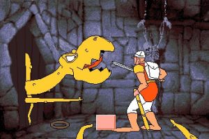 When Dragon’s Lair was ported to the Amiga, it was quite a technical achievement, since it was the first port of Dragon’s Lair to truly come close to replicating the original arcade version. It was far from perfect; it’s hard to cram a laserdisc’s worth of content onto six 3.5″ floppies, so there were a lot of missing scenes and such, but it was leaps and bounds ahead of everything that had come before. It’s quite obsolete now, with the wide availability of HD arcade-perfect ports, but when it was time to release a follow up, things got interesting.