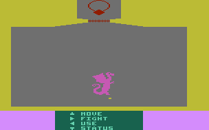 The graphics are decent, considering the hardware. Not much in the way of color, but the fact that the game uses so many unique sprites for enemies is a nice touch. The highlight would have to be the dragon itself, a rather massive sprite that actually animates on screen. (And it doesn’t even look like a duck, either, so it has that over the dragon from Adventure.) The game also makes use of snippets of public domain music, like the Funeral March whenever an enemy dies. (Not usually something you expect to hear when you win a fight.) It’s definitely a lot more creative than the typical use of sound in most Atari games, at least.