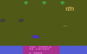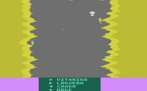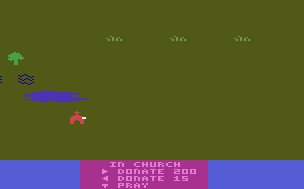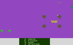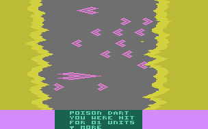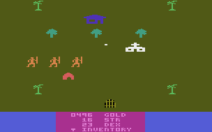 The game is split into three distinct sections: The wilderness, which serves as the game’s overworld, a village with a few shops to spend your gold, and the dragon’s cave. It’s pretty linear, compared to games like Ultima. Once you enter one area, there’s no going back. It may be an RPG, but it’s still an Atari game, which means that if you know what you’re doing, you could probably clear the game in about twenty minutes or so, and that’s being charitable. That feeling of dread and oppression isn’t for nothing, however, because the game will do just about anything in its power to hinder and frustrate you, as was the style of RPGs at the time.