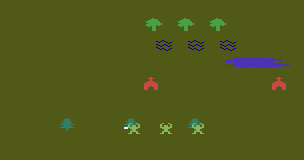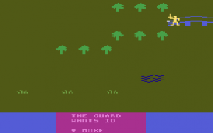DragonStomper was designed and programmed by Stephen Landrum, who modeled it after the Dungeons & Dragons experience, when he was only 20. You might think an RPG would be far beyond the 2600’s humble capabilities, and it actually kind of was. To play DragonStomper, you’d need the Starpath Supercharger, an accessory to play games from cassette tapes. The Supercharger added 6 KB to the consoles RAM, a massive upgrade for the time. For a clear example of just what the Supercharger could do, compare the cartridge version of Frogger with the version made for the Supercharger: