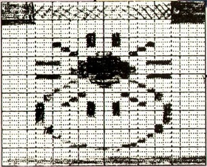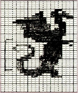 Two of Stephen Landrum’s graph paper sketches for the enemy sprites (from Electronic Fun 2/1983)